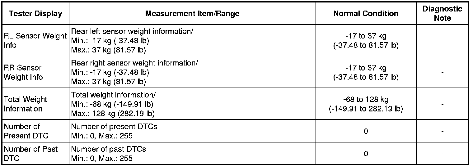 1. DATA LIST FOR OCCUPANT CLASSIFICATION ECU