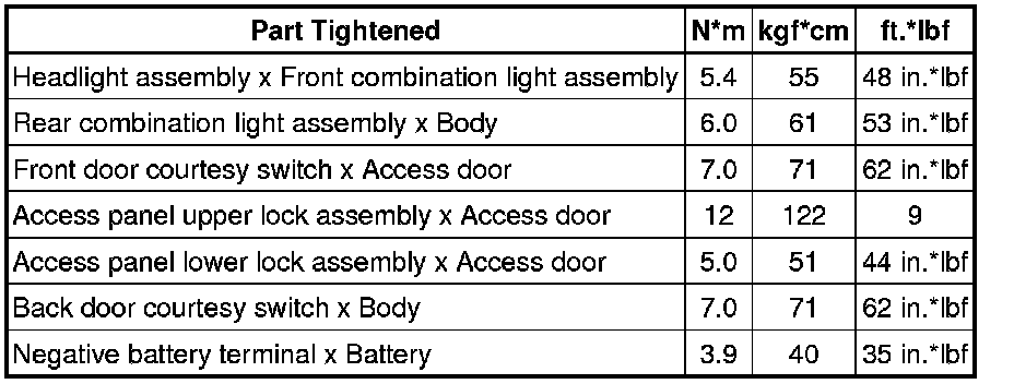 SERVICE SPECIFICATIONS: LIGHTING: TORQUE SPECIFICATIONS