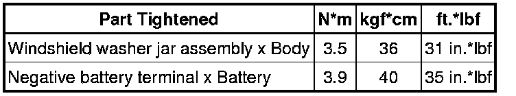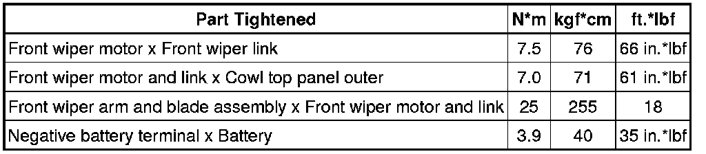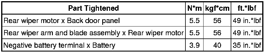 SERVICE SPECIFICATIONS: WIPER AND WASHER: TORQUE SPECIFICATIONS