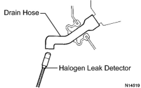 * When bringing the halogen leak detector close to the drain hose, make sure that the halogen leak detector does not react to volatile gases.