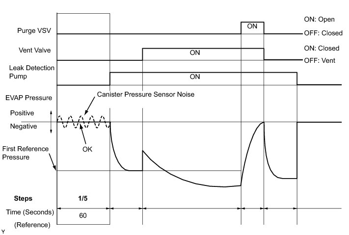 (b) Compare the EVAP pressure in step 3/5 and the second reference pressure standard (step 5/5).