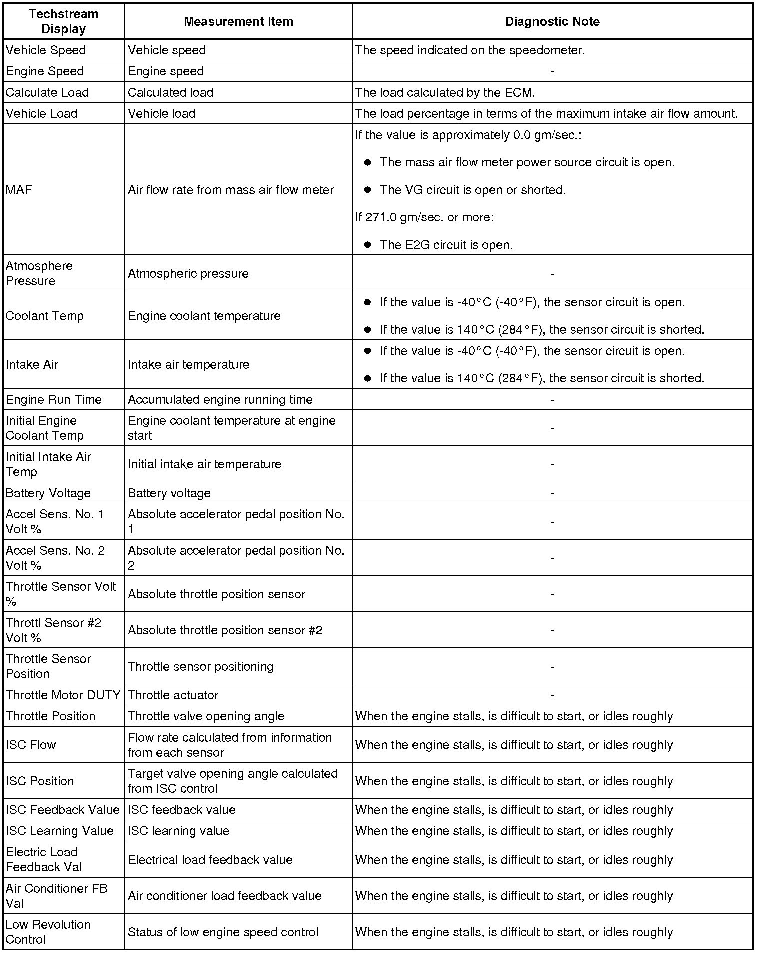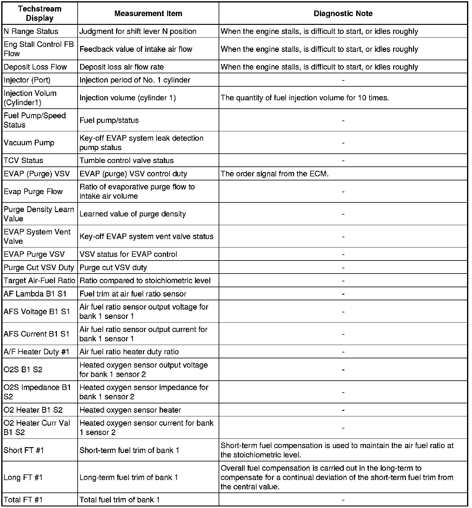 The ECM records vehicle and driving condition information as freeze frame data the moment a DTC is stored. When troubleshooting, freeze frame data can be helpful in determining whether the vehicle was moving or stationary, whether the engine was warmed up or not, whether the air fuel ratio was lean or rich, as well as other data recorded at the time of a malfunction.