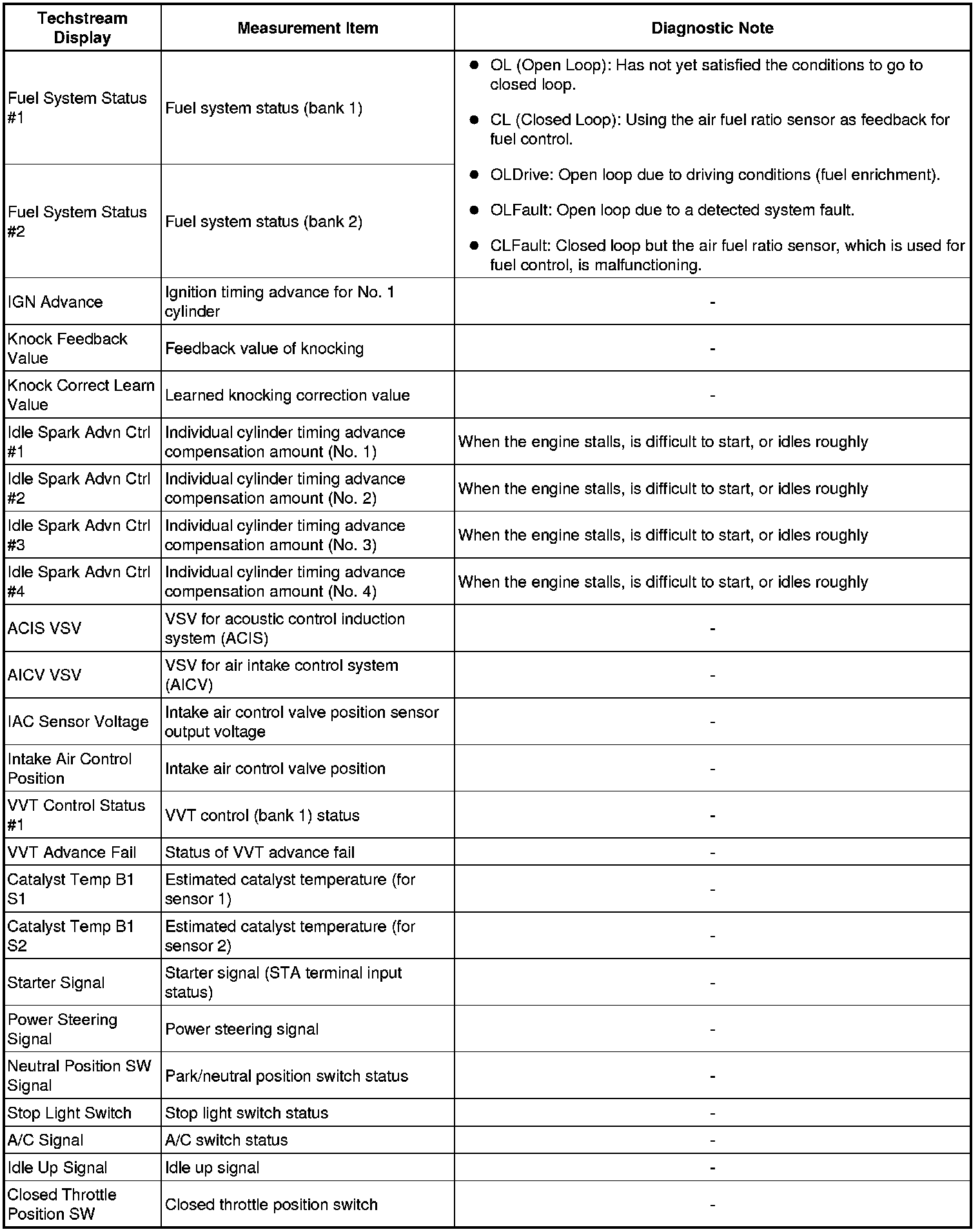 1AR-FE ENGINE CONTROL SYSTEM: SFI SYSTEM: FREEZE FRAME DATA