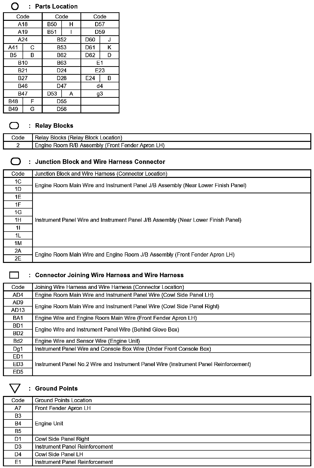 Locations: The locations of components, connectors, ground points, and splices referred to within these diagrams can be found at Vehicle Locations. Locations