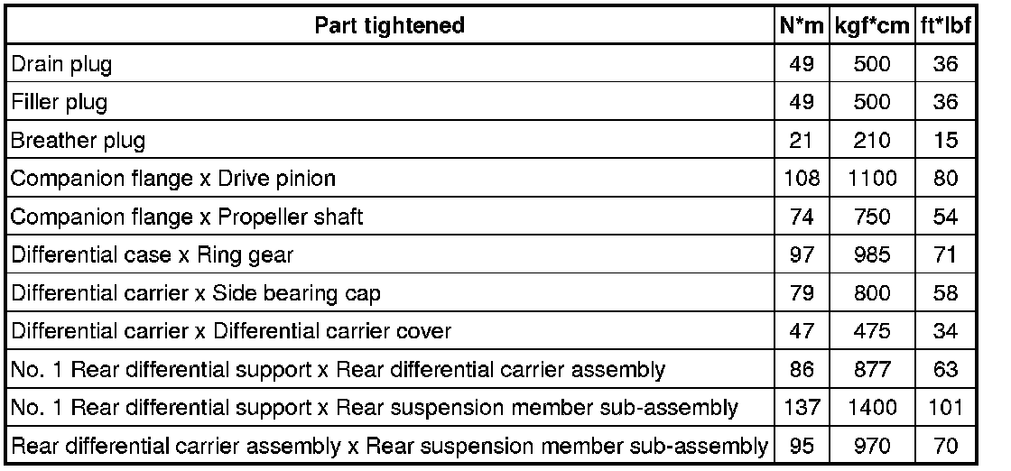 SERVICE SPECIFICATIONS: DIFFERENTIAL: TORQUE SPECIFICATIONS