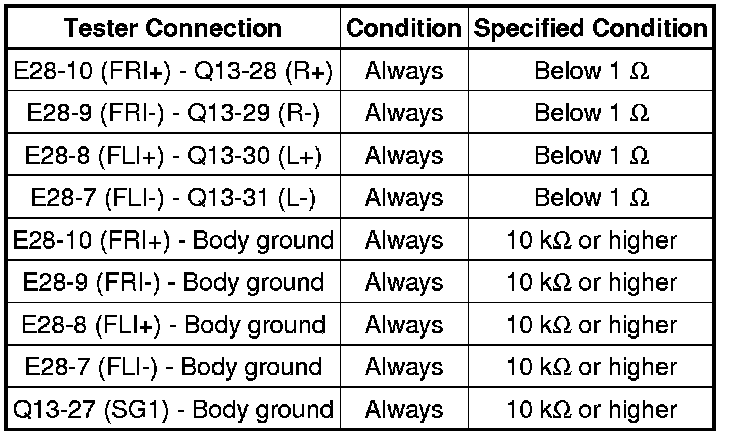 If there is an open or short in the circuit, sound cannot be heard from the speakers even if there is no malfunction in the stereo component tuner assembly, multi-media interface ECU, stereo component amplifier, navigation receiver assembly or speakers.