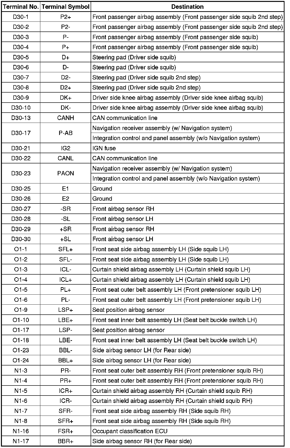 SUPPLEMENTAL RESTRAINT SYSTEM: AIRBAG SYSTEM: TERMINALS OF ECU