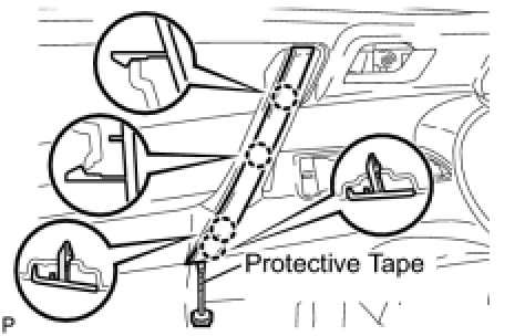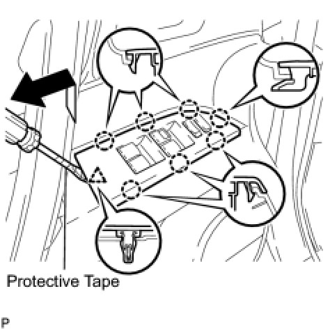 (a) Using a screwdriver with the tip wrapped with protective tape, disengage the 7 claws and clip, and remove the front armrest upper base panel.