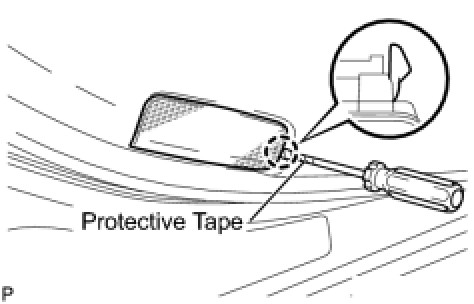 (a) Using a screwdriver with the tip wrapped with protective tape, disengage the 3 claws, and remove the front door inside handle bezel plug.
