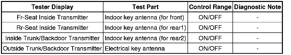 THEFT DETERRENT / KEYLESS ENTRY: SMART KEY SYSTEM (for Start Function): DATA LIST / ACTIVE TEST