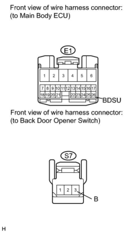 4. CHECK HARNESS AND CONNECTOR (MAIN BODY ECU - BACK DOOR OPENER SWITCH)