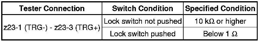 If the driver side door entry lock function does not operate but the entry unlock function operates, the communication line between the vehicle and electrical key transmitter is normal. The part at fault may be an entry lock switch circuit (certification ECU [smart key ECU assembly] -> driver side door outside handle [entry lock switch] -> driver side door electrical key oscillator).