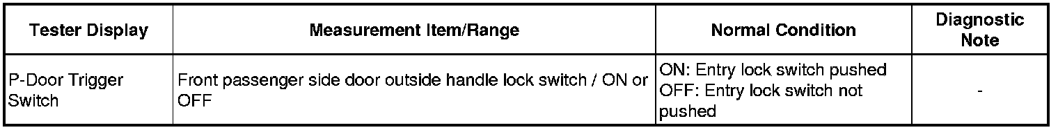 - Front Passenger Side Door Entry Lock Function does not Operate