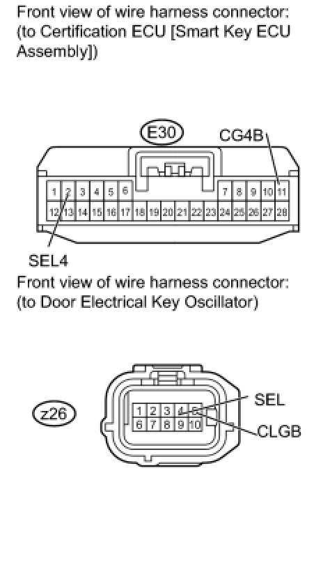 NG -- CHECK HARNESS AND CONNECTOR (CERTIFICATION ECU [SMART KEY ECU ASSEMBLY] - DOOR ELECTRICAL KEY OSCILLATOR)