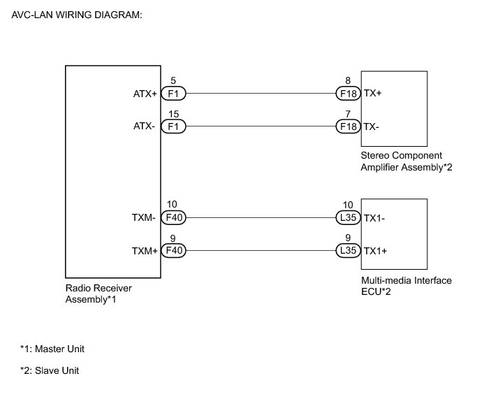 (a) Referring to the AVC-LAN wiring diagram below, check the AVC-LAN circuit between the multi-media interface ECU and component shown by the sub-code.