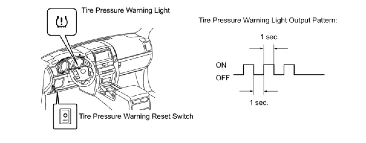 (b) Press and hold the tire pressure warning reset switch for 3 seconds or more so that the tire pressure warning light blinks 3 times.