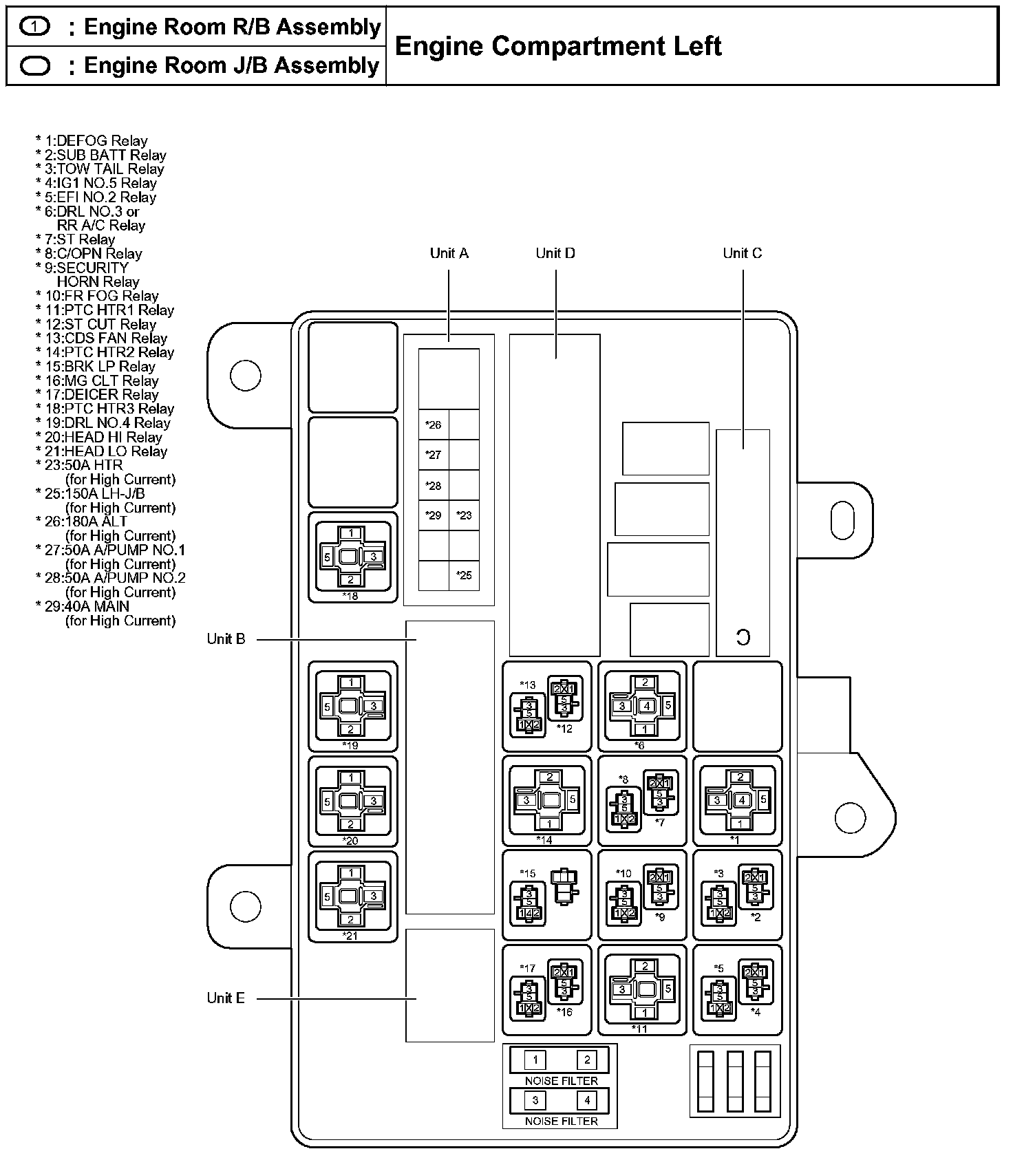 Engine Room R/B Assembly, Engine Room J/B Assembly - Engine Compartment Left: