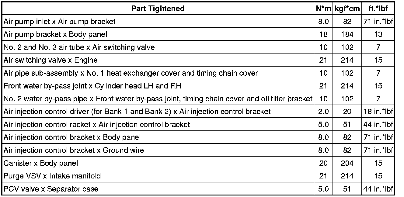 SPECIFICATIONS: 3UR-FE EMISSION CONTROL: TORQUE SPECIFICATIONS