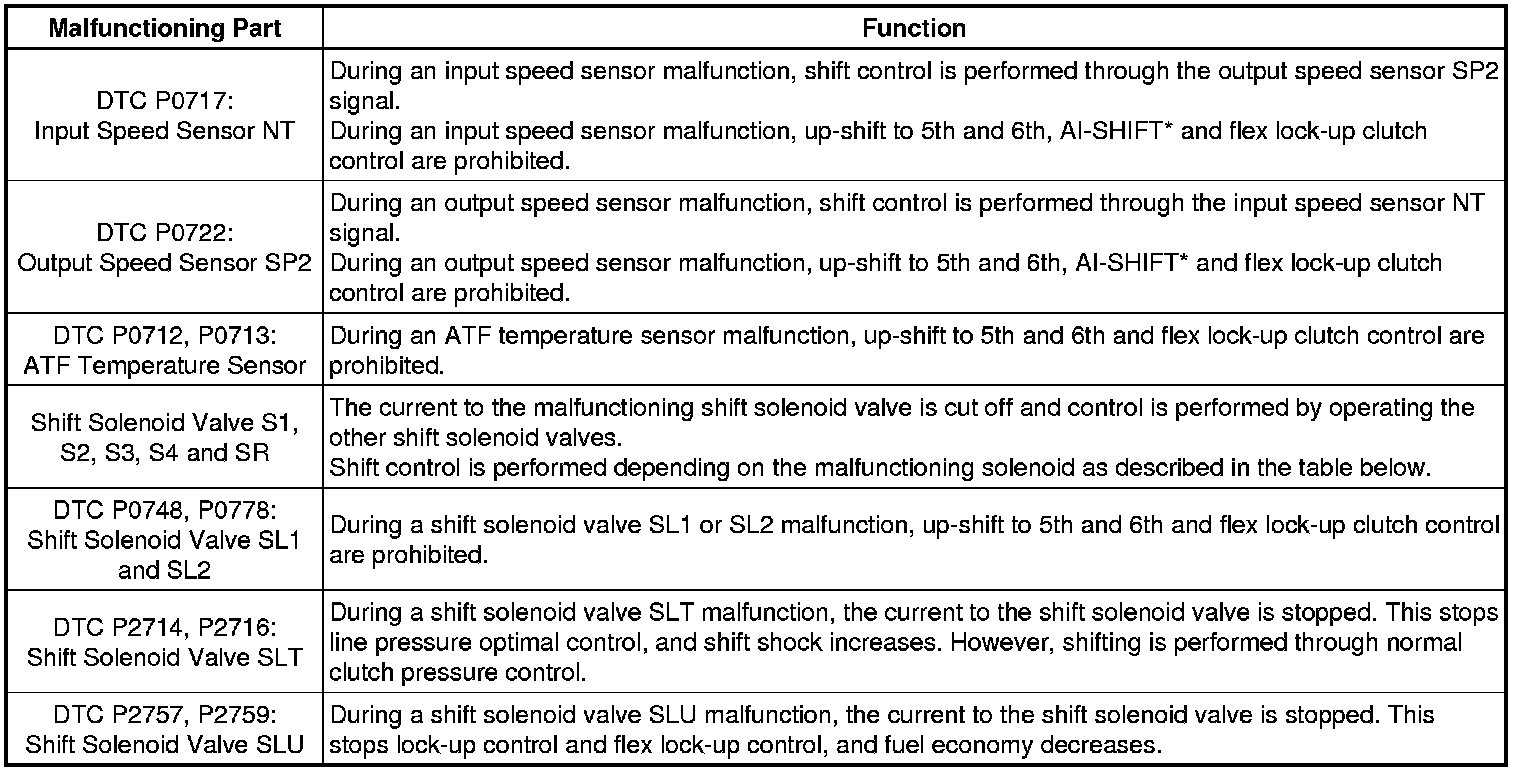 AB60F AUTOMATIC TRANSMISSION / TRANSAXLE: AUTOMATIC TRANSMISSION SYSTEM: FAIL-SAFE CHART