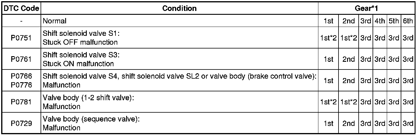 * *1: Actual gear shift (gear position) under fail-safe operation.