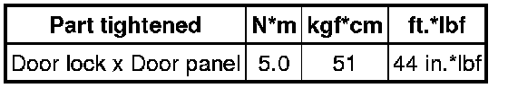 SPECIFICATIONS: DOOR LOCK: TORQUE SPECIFICATIONS