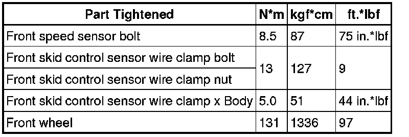 SPECIFICATIONS: BRAKE CONTROL / DYNAMIC CONTROL SYSTEMS: TORQUE SPECIFICATIONS
