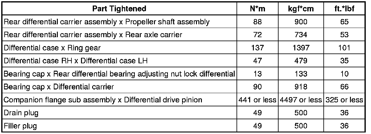 SPECIFICATIONS: AXLE AND DIFFERENTIAL: TORQUE SPECIFICATIONS