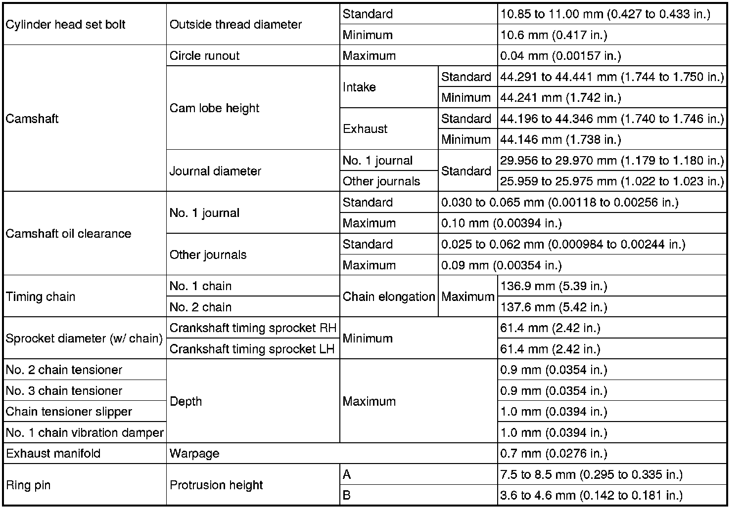 SPECIFICATIONS: 3UR-FE ENGINE MECHANICAL: SERVICE DATA