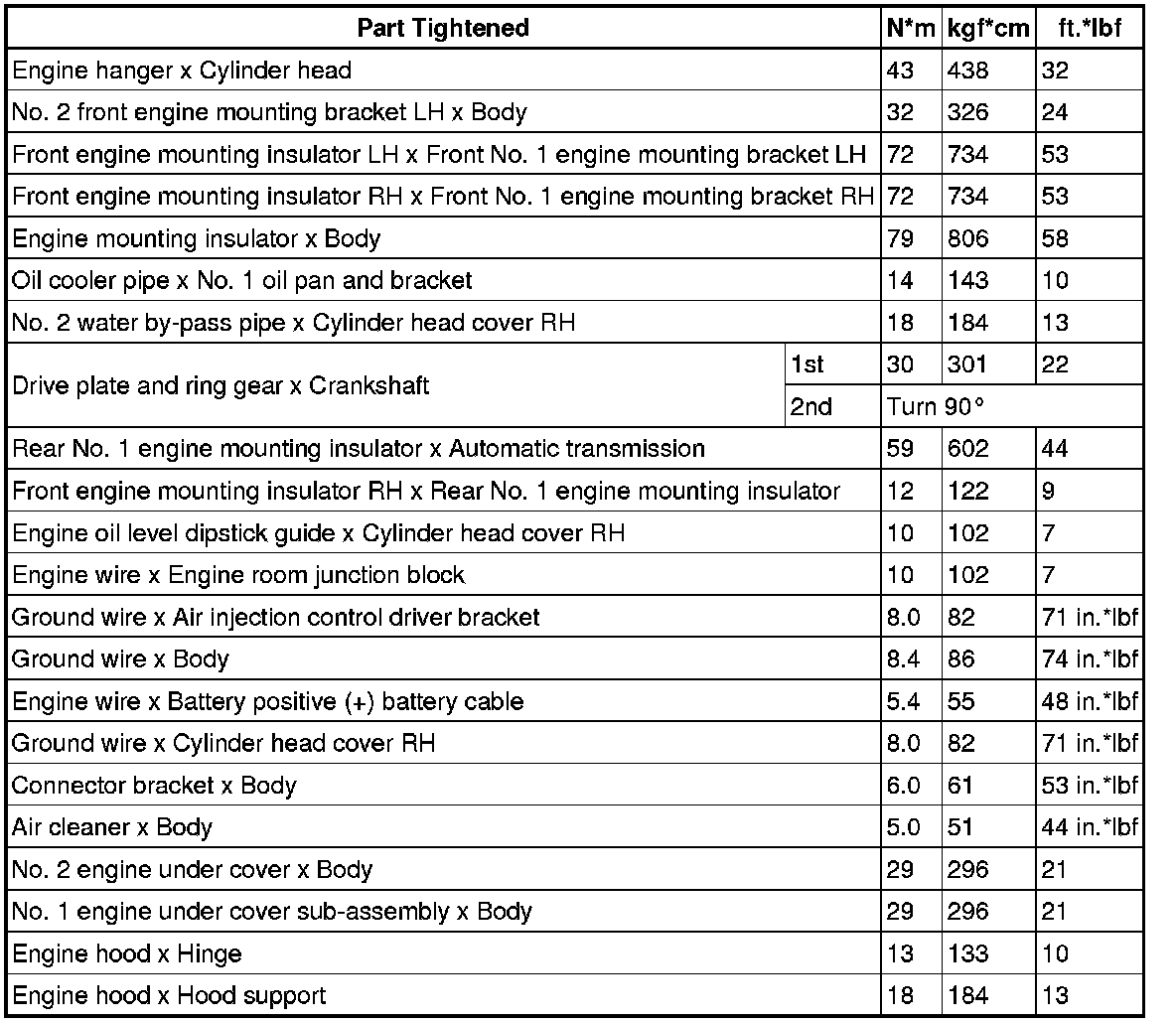 SPECIFICATIONS: 3UR-FE ENGINE MECHANICAL: TORQUE SPECIFICATIONS