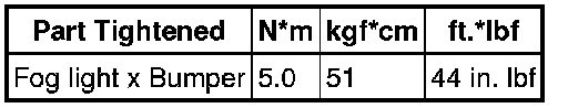 SPECIFICATIONS: LIGHTING (EXT): TORQUE SPECIFICATIONS