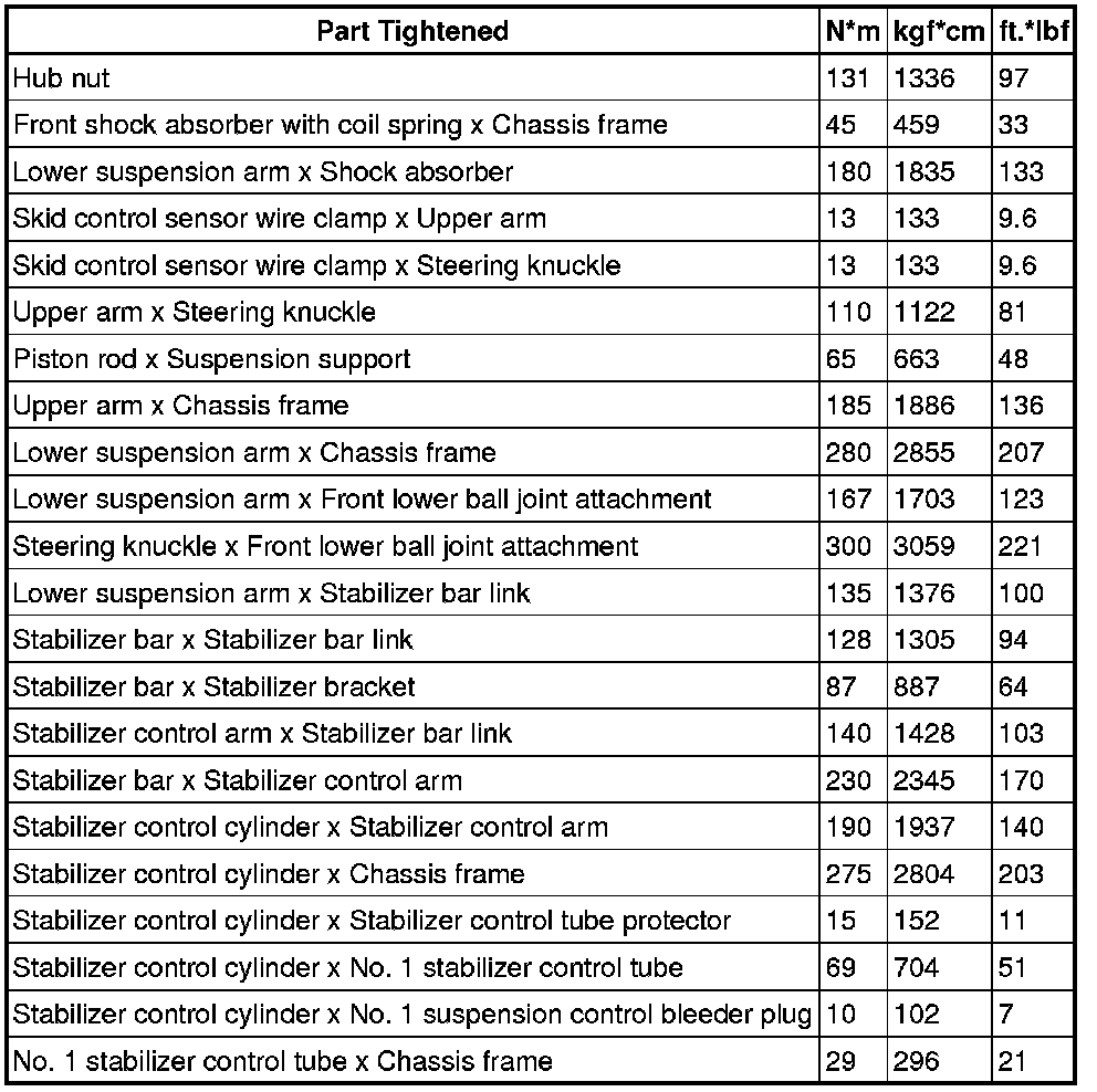 : TORQUE SPECIFICATIONS