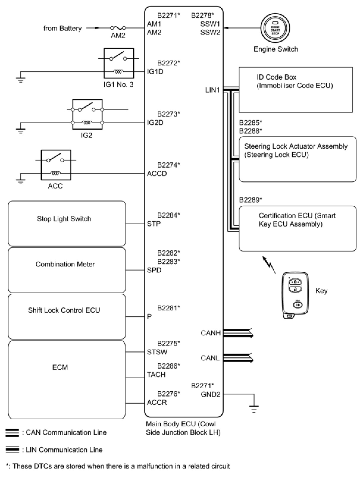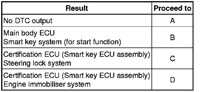 B -- GO TO SMART KEY SYSTEM (FOR START FUNCTION) (DIAGNOSTIC TROUBLE CODE CHART) Smart Key System (for Start Function)