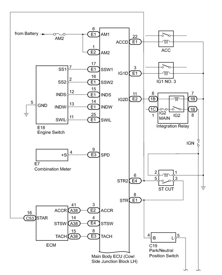 (c) The main body ECU activates the IG1 No. 3 relay, ACC relay and integration relay (IG2 relay).