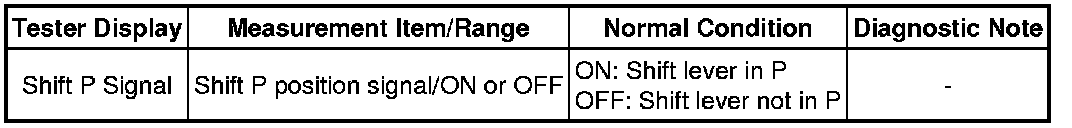 ON (shift lever in P) and OFF (shift lever not in P) are displayed on the Techstream.