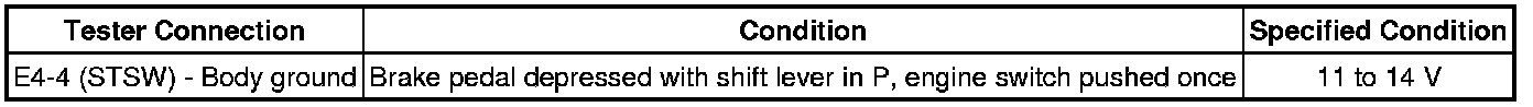 (1) When there is fuel in the fuel tank, the key is inside the vehicle and the shift lever is in P, check that depressing the brake pedal and pressing the engine switch cranks the engine.