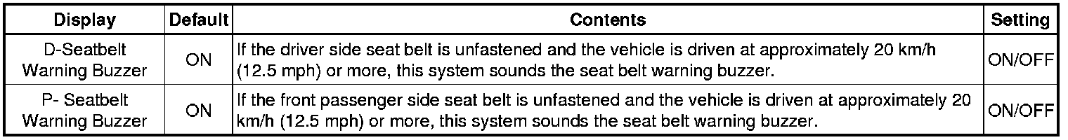(k) SEAT BELT WARNING SYSTEM