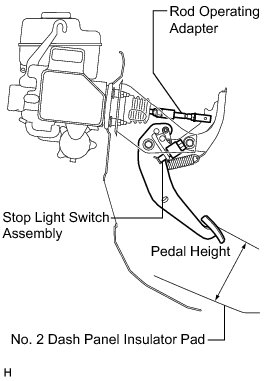 If the pedal height is incorrect even if the rod operating adapter is adjusted, check that there is no damage in the brake pedal, brake pedal lever, brake pedal support and dash panel.
