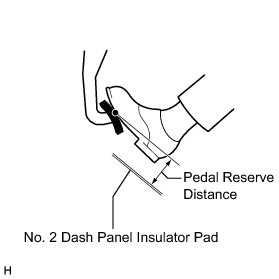 Standard Pedal Reserve Distance from No. 2 Dash Panel Insulator Pad at 490 N (50 kgf, 110.2 lbf):
