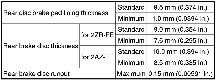 SPECIFICATIONS: BRAKE (REAR): SERVICE DATA