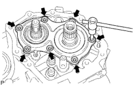 (a) Using a "TORX" socket wrench (T45), remove the 7 "TORX" screws and rear bearing retainer from the manual transmission case.