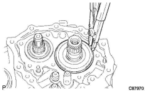 (a) Using a snap ring expander, remove the input shaft rear bearing shaft snap ring from the input shaft.