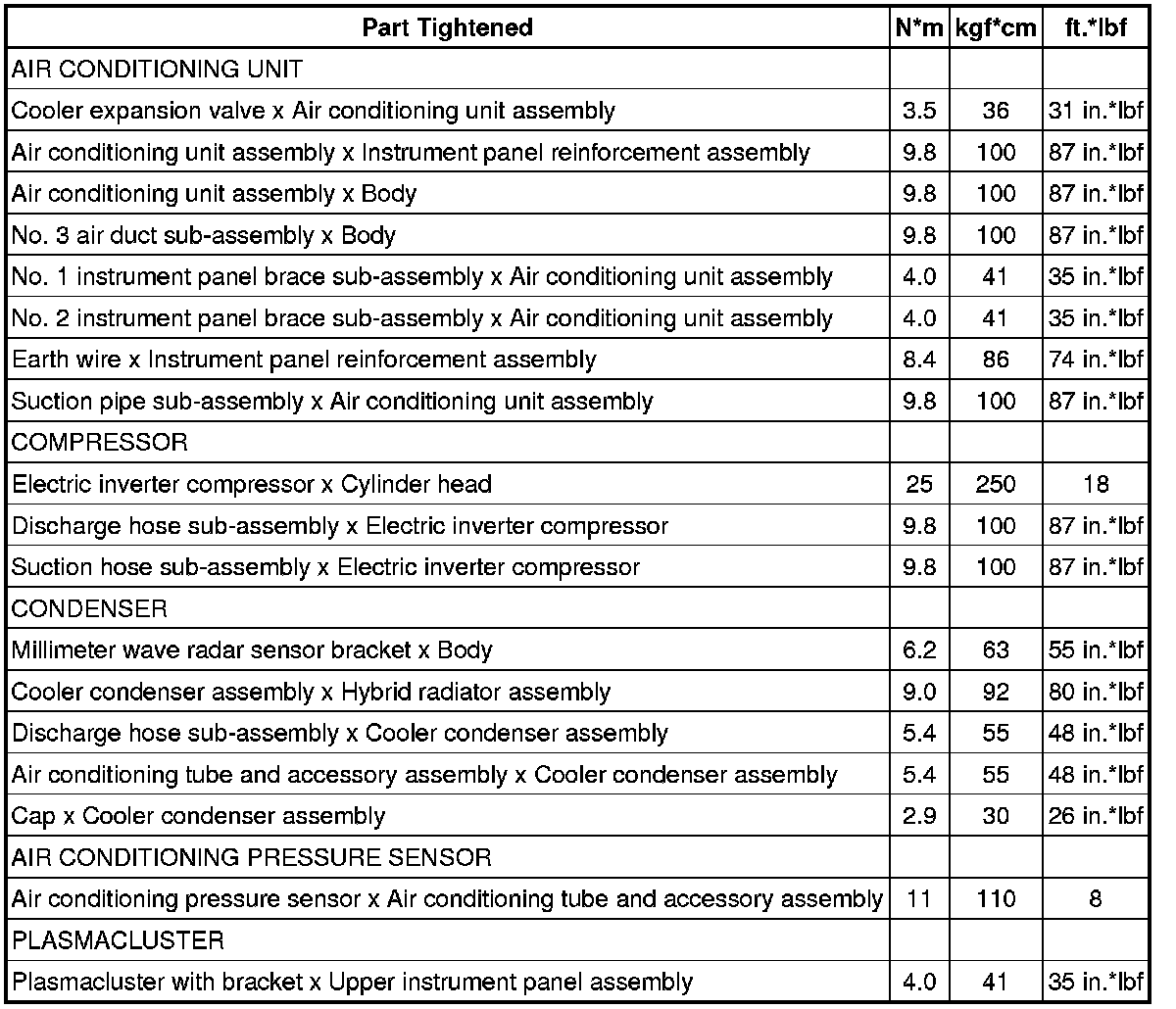 SPECIFICATIONS: HEATING / AIR CONDITIONING: TORQUE SPECIFICATIONS