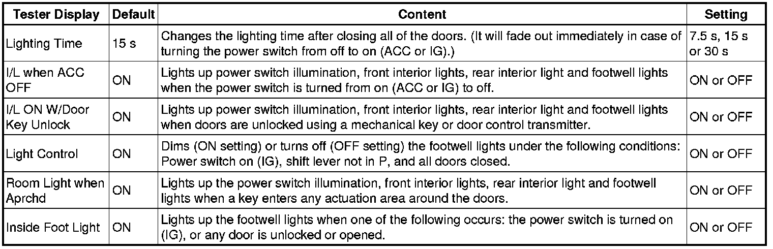 4. ENTRY UNLOCK MODE SWITCHING* (SMART KEY SYSTEM (for Entry Function))