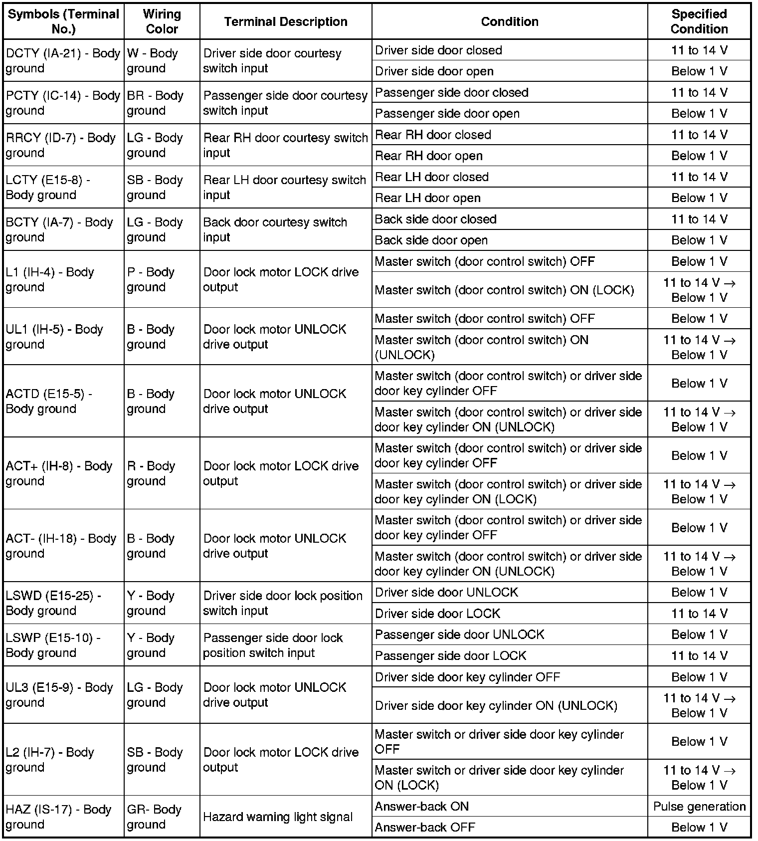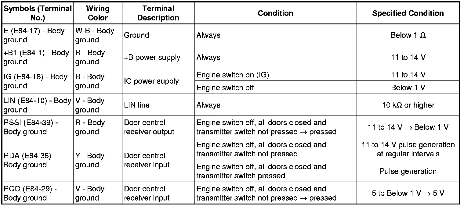 DOOR LOCK: WIRELESS DOOR LOCK CONTROL SYSTEM (w/ Smart Key System): TERMINALS OF ECU