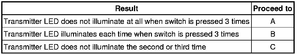 (a) Check that the transmitter LED illuminates 3 times when the switch is pressed 3 times.