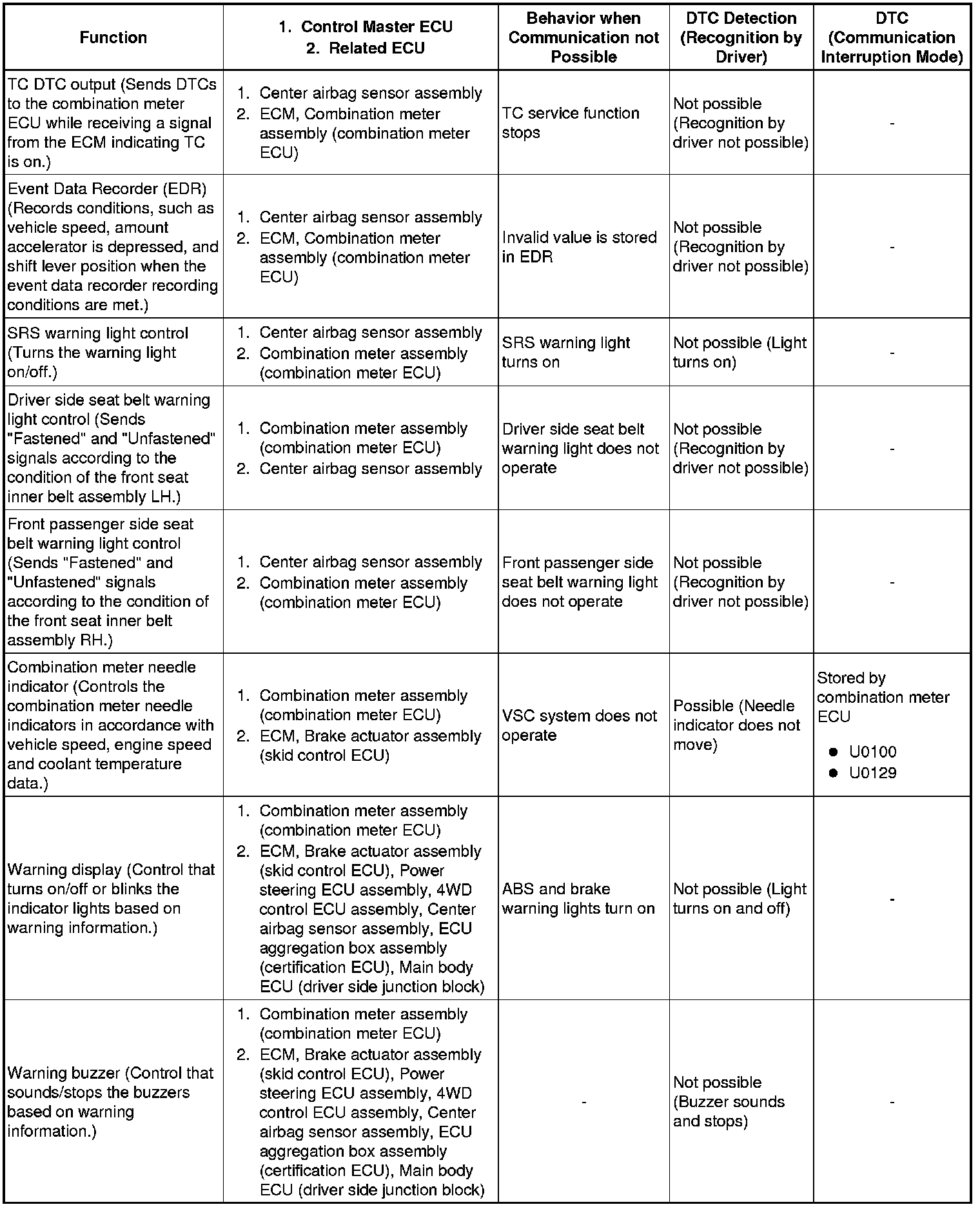 (b) The table below shows the effects on each system when communication is impossible. For further details, refer to each system.