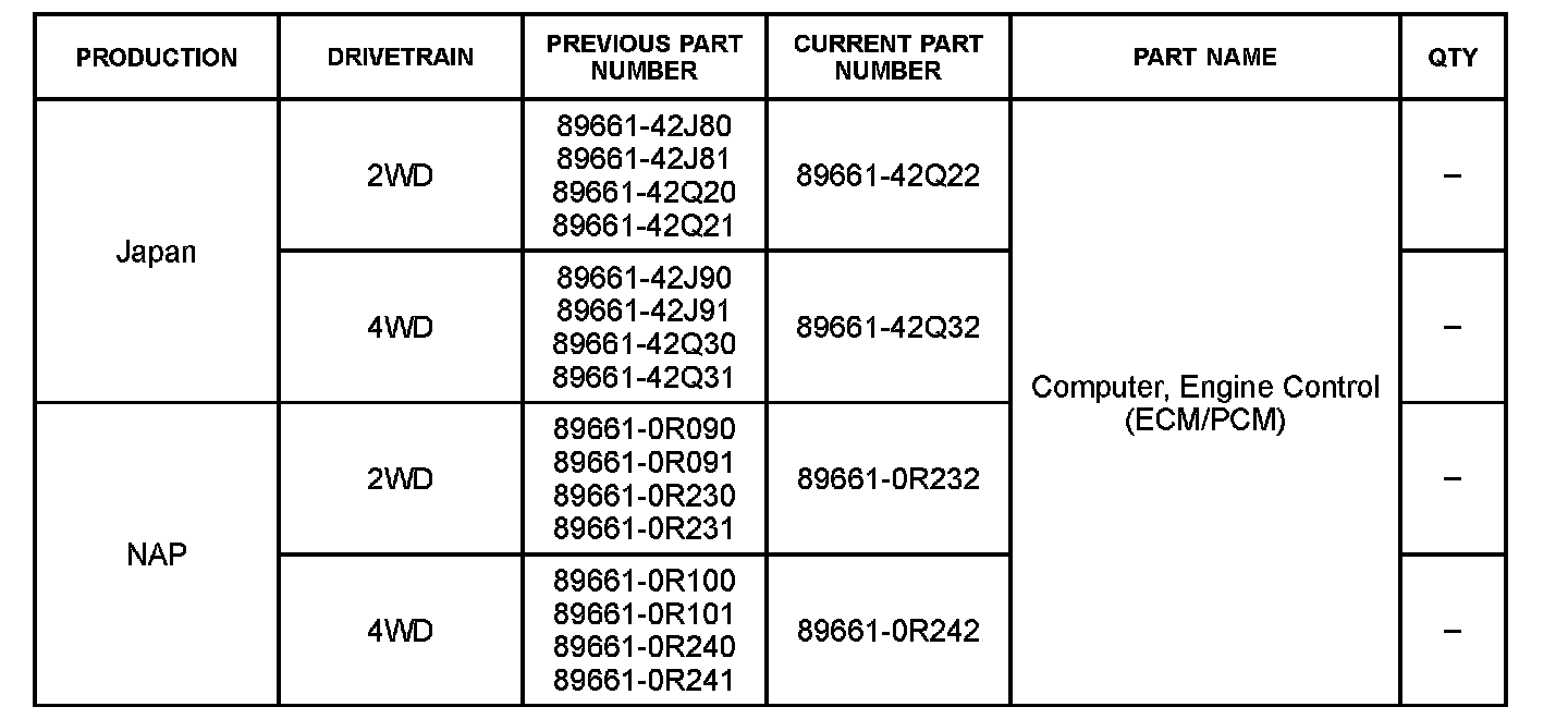 ^ ECM part number [Refer to the Parts Information section for the CURRENT PART NUMBER]