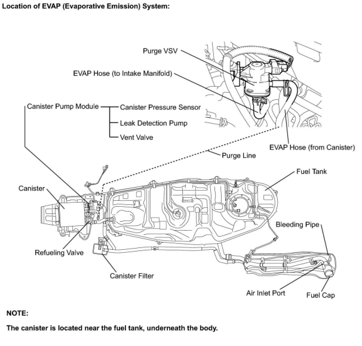 This monitor checks for EVAP (Evaporative Emission) system leaks and canister pump module malfunctions. The monitor starts 5 hours* after the ignition switch is turned off. At least 5 hours are required for the fuel to cool down to stabilize the EVAP pressure, thus making the EVAP system monitor more accurate.