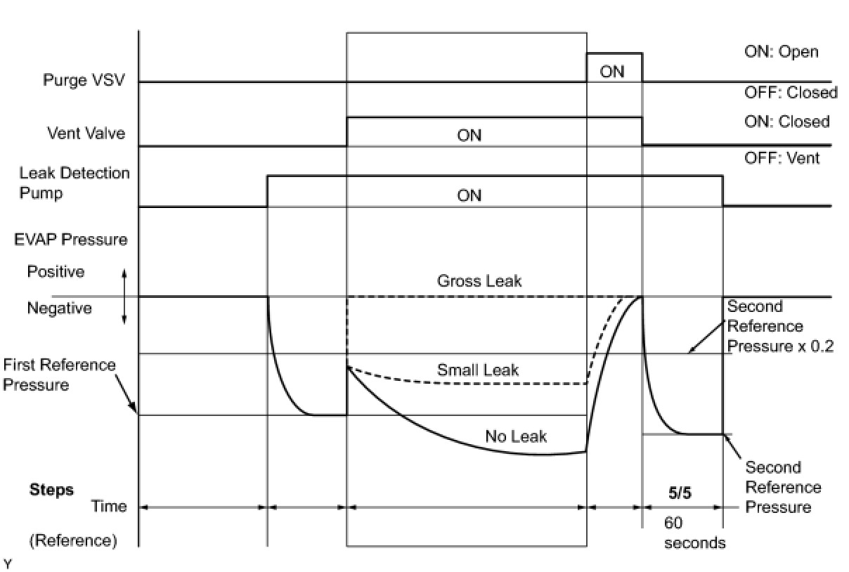(b) Compare the EVAP pressure in step 3/5 and the second reference pressure (step 5/5).