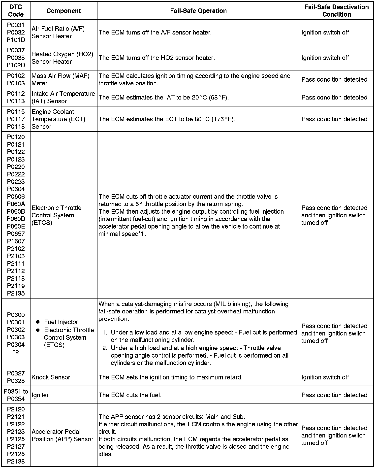 * *2: Misfire-related fail-safe operations occur when catalyst overheat malfunctions occur.